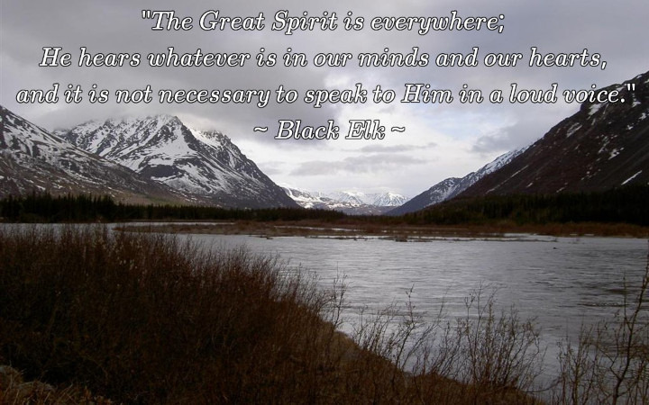 The Great Spirit is everywhere: He hears whatever is in our minds and our hearts, and it is not necessary to speak to Him in a loud voice. ~Black Elk~